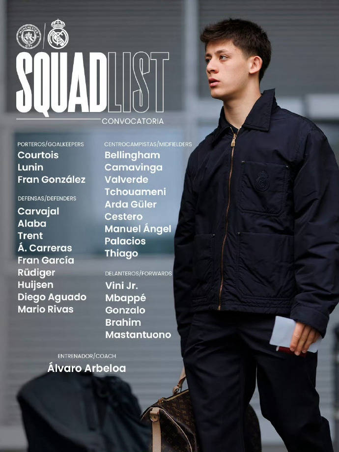 皇马客场对阵曼城大名单: